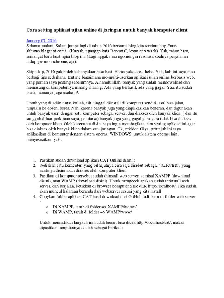 Jun 10, 2019 · aplikasi ujian online (cat) link postingan blog.